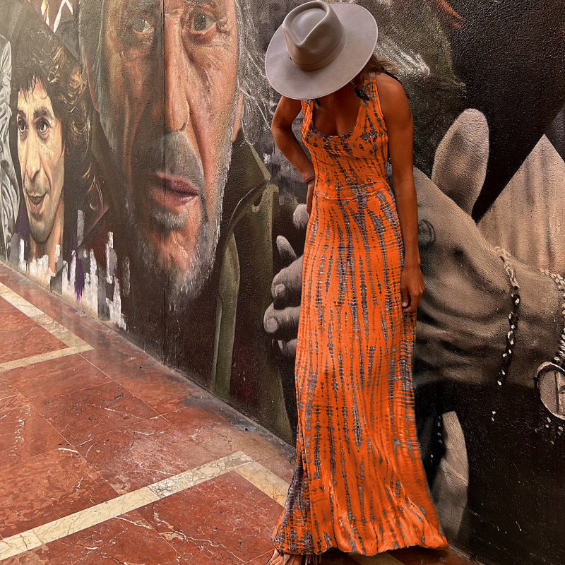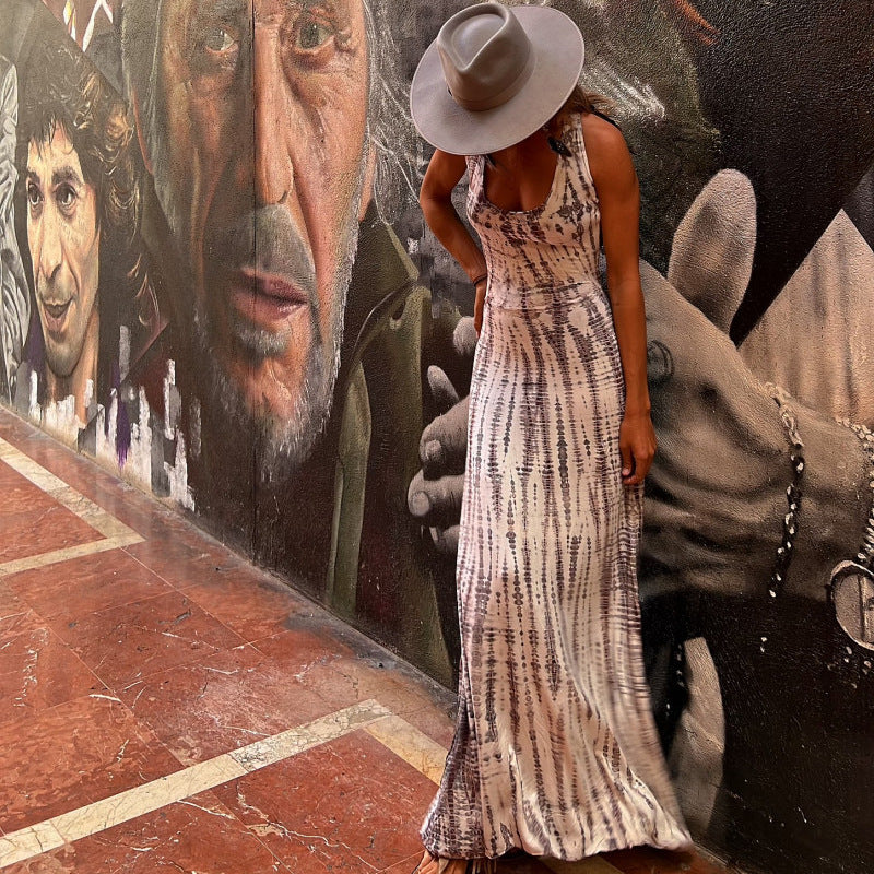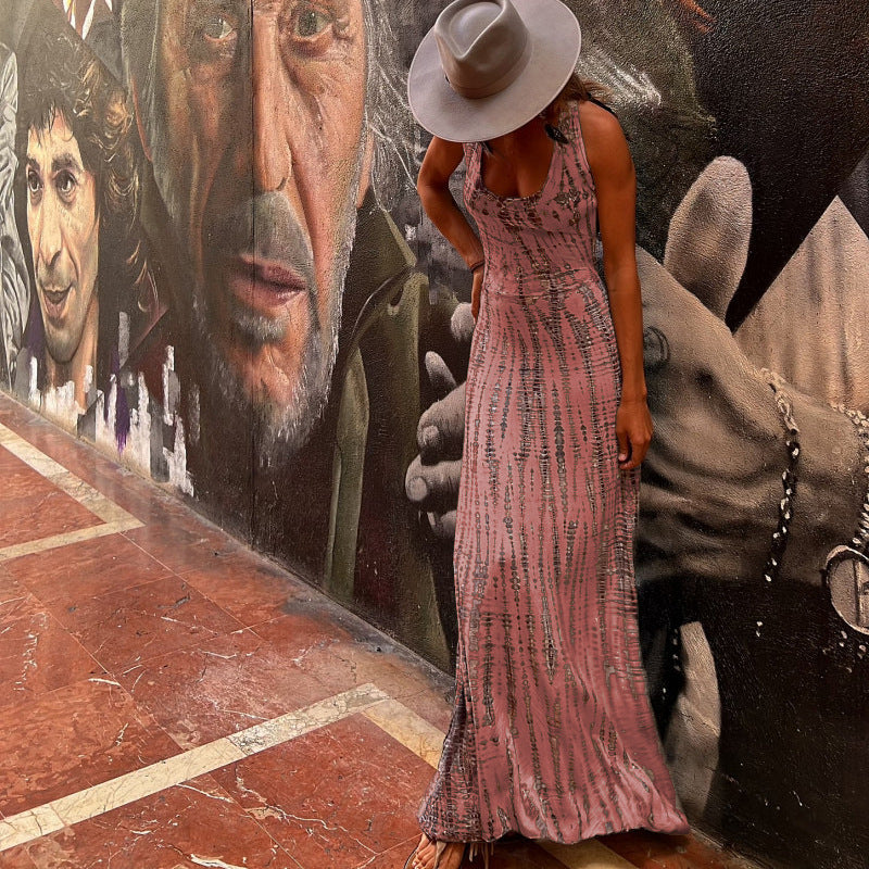 Slip into something unforgettable this summer with this ultra-flattering, sleeveless maxi dress. The Hayley dress balances bold print with timeless elegance. Featuring a daring open back and figure-enhancing A-line silhouette, this piece transitions beautifully from daytime outings to evening soirées.